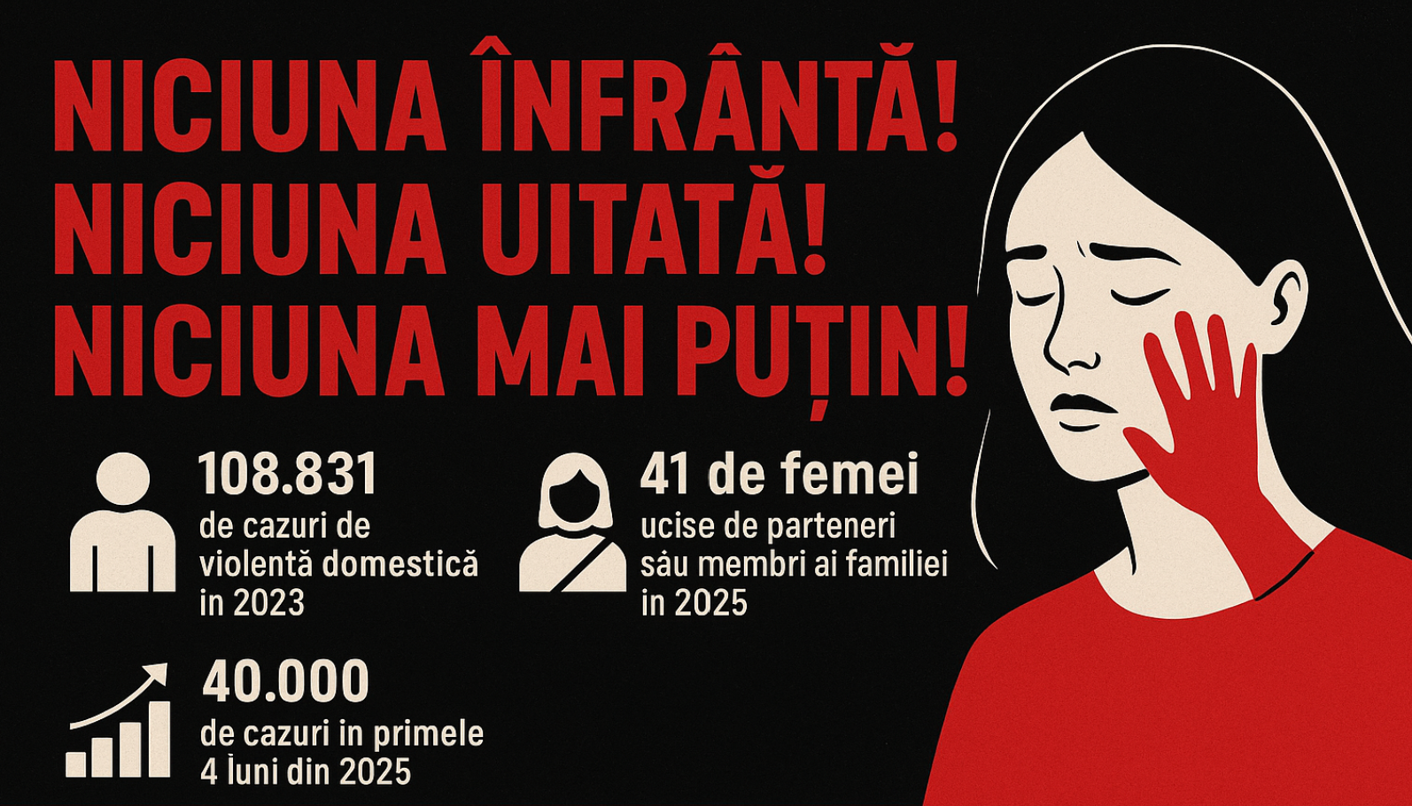 Femeia creează viață, nu violență. Ea poartă pe umeri iubire, nu lovituri. Femeia nu e o țintă — e temelia vieții. Femeia nu este și nu va fi niciodată sacul de box al unei societăți bolnave de tăcere.